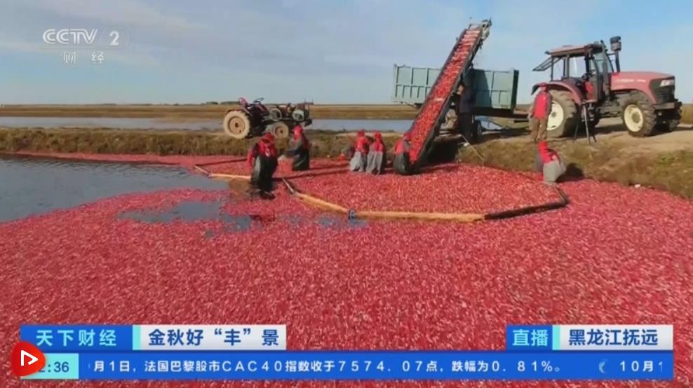 央視網(wǎng)消息:近日,在黑龍江撫遠市的亞洲最大蔓越莓基地,4200畝蔓越莓迎來采收季。今年當?shù)氐穆捷粘扇绾危?/p>