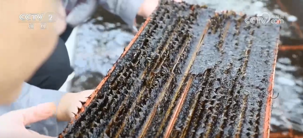 在福建省連江縣官塢村海帶育苗基地,黑壓壓的海帶苗整齊有序地平鋪在流動的海水里。漁民將一塊塊苗簾從苗池里打撈上來,解開繩結(jié)裝入泡沫箱中,準備陸續(xù)運往大連。 這批海帶苗是當?shù)刈灾髋嘤暮?,具有耐高溫、產(chǎn)量高等特點,成活率超過95%,往年在大連海區(qū)養(yǎng)殖5到6個月時間,畝產(chǎn)新鮮海帶可達30—35噸。