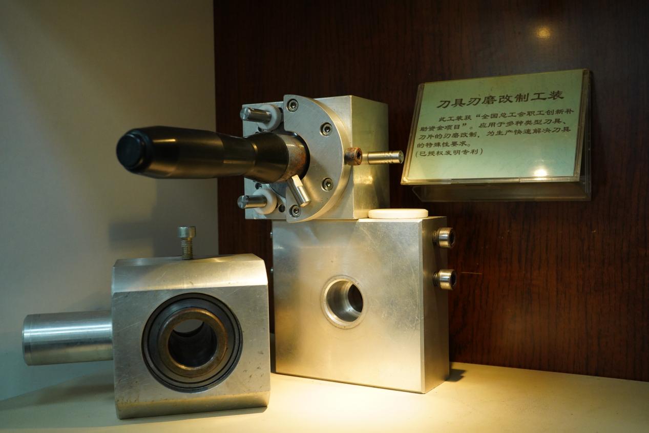 作為工業(yè)機(jī)床的“牙齒”,刀具是關(guān)鍵耗材。羅軍注意到,集團(tuán)每年在刀具上的使用成本高達(dá)幾千萬元,刀具損耗的開銷相當(dāng)可觀?!耙话训毒叩某鰪S價格在幾百到上萬元不等,一旦有磨損缺口就不能用了,我當(dāng)時就想為什么不能自己磨來使用呢?”說干就干,幾經(jīng)實踐后,羅軍工作室的團(tuán)隊成功發(fā)明了一種多功能磨刀裝置,可對廢舊刀具進(jìn)行二次改制延長刀具使用壽命。