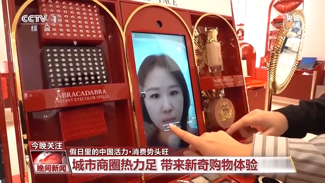 在四川成都,一家大型商場(chǎng)的裸眼3D大屏換上了國慶新裝,身臨其境的原始森林、被滿天繁星包裹,吸引了許多游客前來打卡?,F(xiàn)場(chǎng)更有虛擬試妝、虛擬試鞋、智能導(dǎo)購等等前沿科技帶來的新奇購物體驗(yàn)。