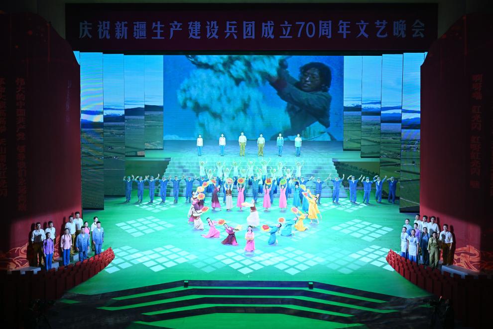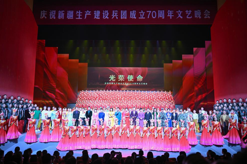 10月6日,慶祝新疆生產(chǎn)建設兵團成立70周年文藝晚會《光榮使命》在烏魯木齊文化中心大劇院舉行。