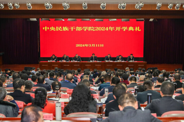 ▲3月11日,中央民族干部學(xué)院2024年開學(xué)典禮暨全國(guó)民委系統(tǒng)鑄牢中華民族共同體意識(shí)輪訓(xùn)班(第一期)舉行開班式。來(lái)源:中央民族干部學(xué)院