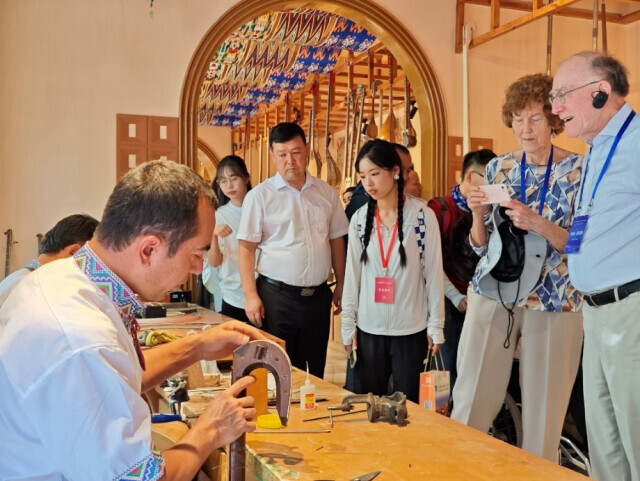 ▲2024年6月,“中國(guó)新疆的歷史與未來(lái)”國(guó)際論壇的外國(guó)專家在疏附縣“中國(guó)新疆民族樂器村”考察。中國(guó)民族報(bào)記者李翠攝