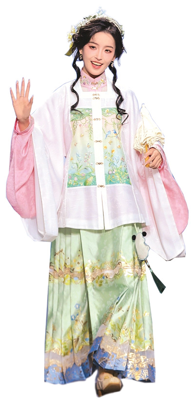 “除馬面裙外,目前市面上由宋制服裝中的褙子改良而來的服裝樣式也很受歡迎,明制服裝中的立領則被大量應用于新中式服裝?!贝饔昵缯f,如今的漢服已兼具傳統(tǒng)文化和流行時尚的雙重屬性。