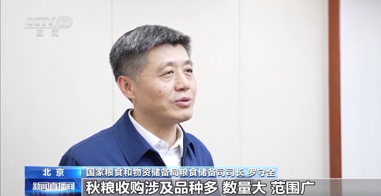 國(guó)家糧食和物資儲(chǔ)備局糧食儲(chǔ)備司司長(zhǎng) 羅守全:目前,南方中晚稻已經(jīng)上市,東北和華北秋糧還有半個(gè)月左右也將集中上市。目前,主產(chǎn)區(qū)準(zhǔn)備收購(gòu)倉(cāng)容超過3億噸,能夠滿足農(nóng)民售糧需求。