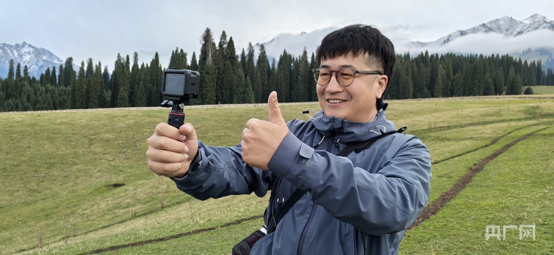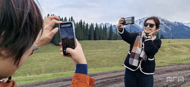 第二次來到庫爾德寧的李明站在草原之上、雪山之下、云杉之中,舉起相機拍個不停?!靶陆木吧挥心阏嬲驹谶@里了,用自己的眼睛看到,你就會覺得什么是美好,無法用語言去形容的美,直抵心靈的美?!崩蠲髡f,雖然他是第二次來,但和第一次來時看到的風景又不一樣了,新疆真是一年四季都會有不同的景色,任何時候來都非常值得,不虛此行。