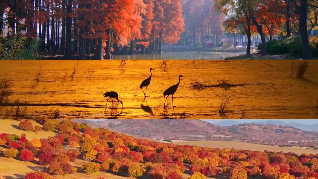 江蘇黿頭渚秋意漸濃,與太湖相映成趣;山東黃河入海口,成群鳥兒在濕地覓食、嬉戲;山西太行山色彩繽紛,秋色宜人。