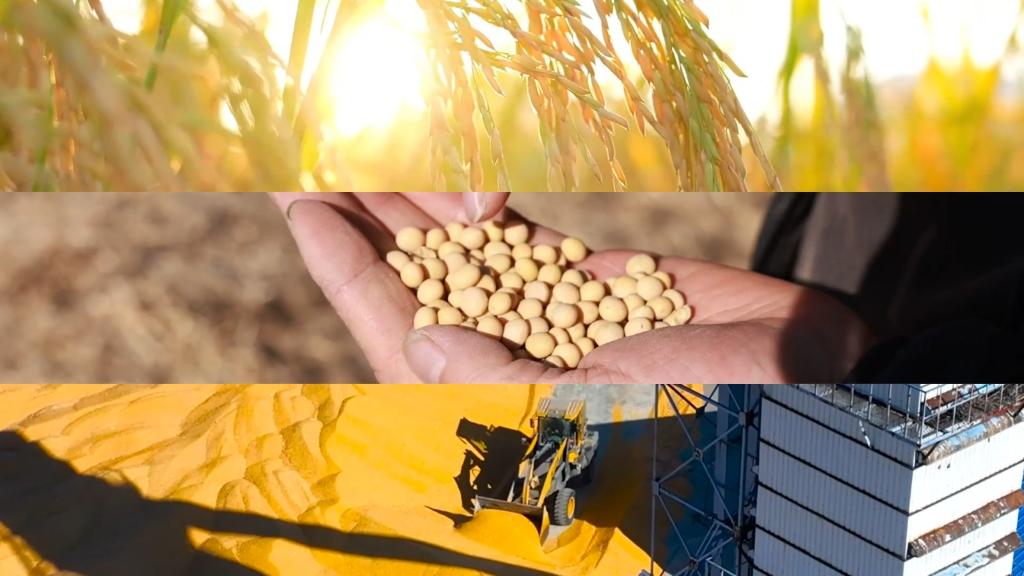 廣東乳源寬闊稻田迎豐收;黑龍江黑河田野上大豆搖鈴、機(jī)器轟鳴,秋糧收購全面開秤。