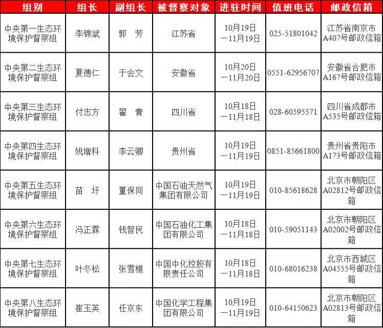 第三輪第三批中央生態(tài)環(huán)境保護(hù)督察進(jìn)駐一覽表