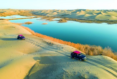游客在尉犁縣羅布人村寨體驗(yàn)沙漠越野。汪志鵬攝