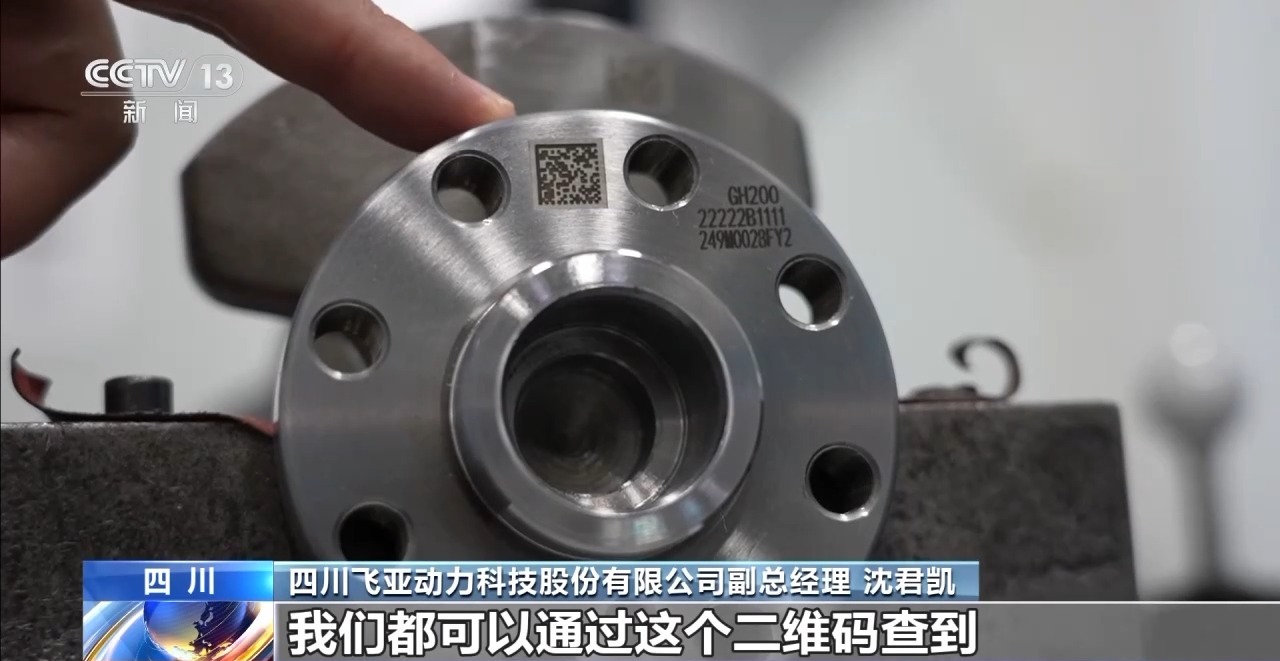 四川飛亞動(dòng)力科技股份有限公司副總經(jīng)理 沈君凱:質(zhì)量的信息、技術(shù)的信息,甚至是當(dāng)天生產(chǎn)產(chǎn)品設(shè)備的整個(gè)機(jī)器的型號(hào)、設(shè)備的狀態(tài),我們都可以通過這個(gè)二維碼查到。