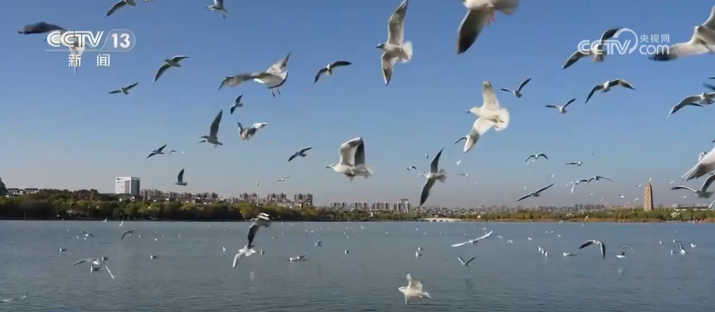 寧夏銀川:紅嘴鷗如期而至 短暫休整再遷徙