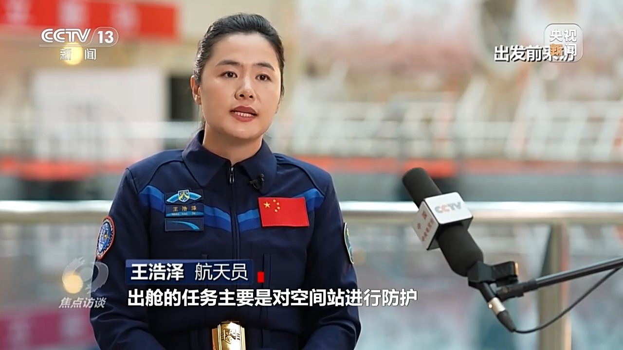 航天員 王浩澤:出艙的任務(wù)主要是對空間站進(jìn)行防護(hù)。因?yàn)樵诳臻g里面運(yùn)行,空間站它有可能會受到微流星、空間碎片干擾,甚至是沖擊,所以我們要對艙外的一些重要管路、設(shè)備進(jìn)行防護(hù)。