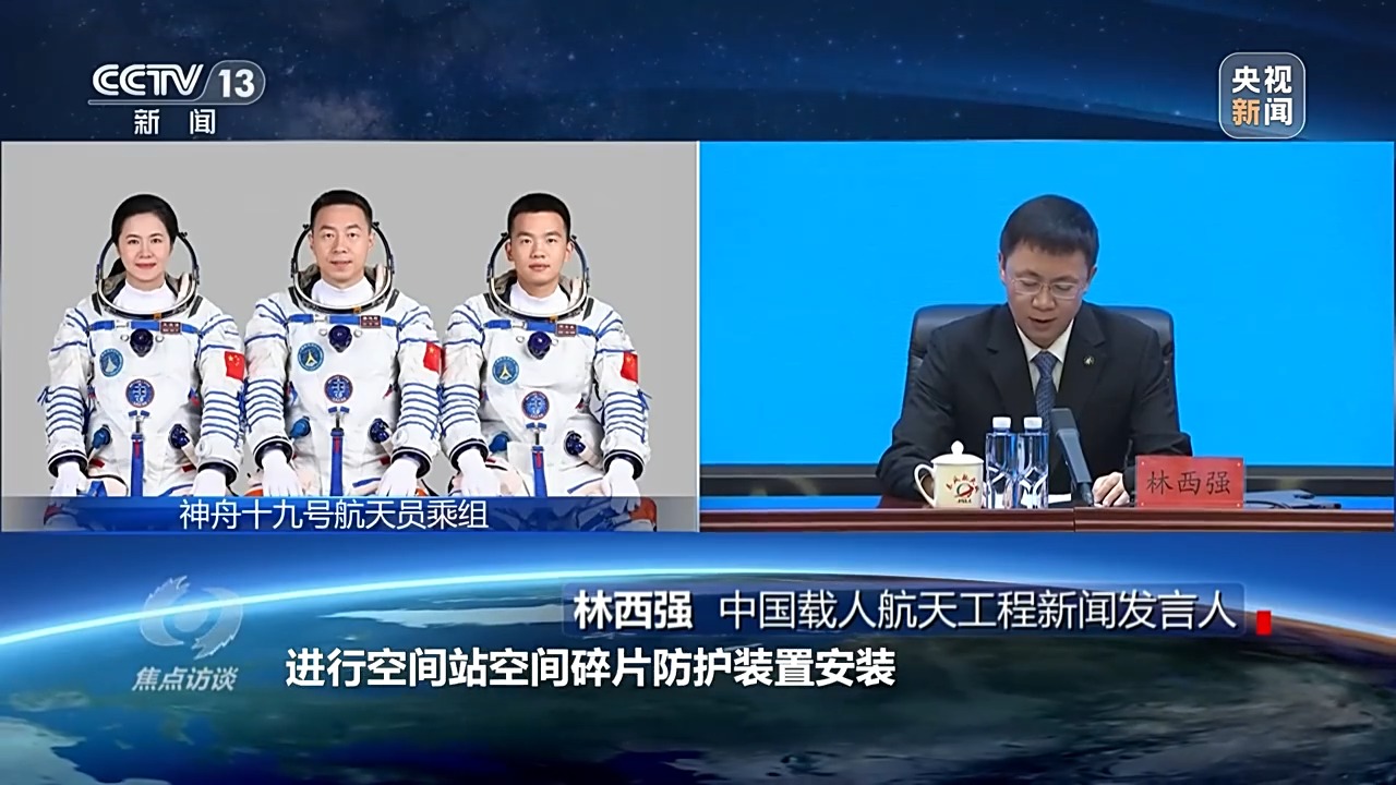中國載人航天工程新聞發(fā)言人 林西強(qiáng):此次任務(wù)在空間站駐留約六個月,開展空間科學(xué)與應(yīng)用實(shí)(試)驗(yàn),實(shí)施航天員出艙活動及貨物進(jìn)出艙,進(jìn)行空間站空間碎片防護(hù)裝置安裝,艙外載荷和艙外設(shè)備安裝與回收等任務(wù),開展科普教育和公益活動以及空間搭載試驗(yàn)。