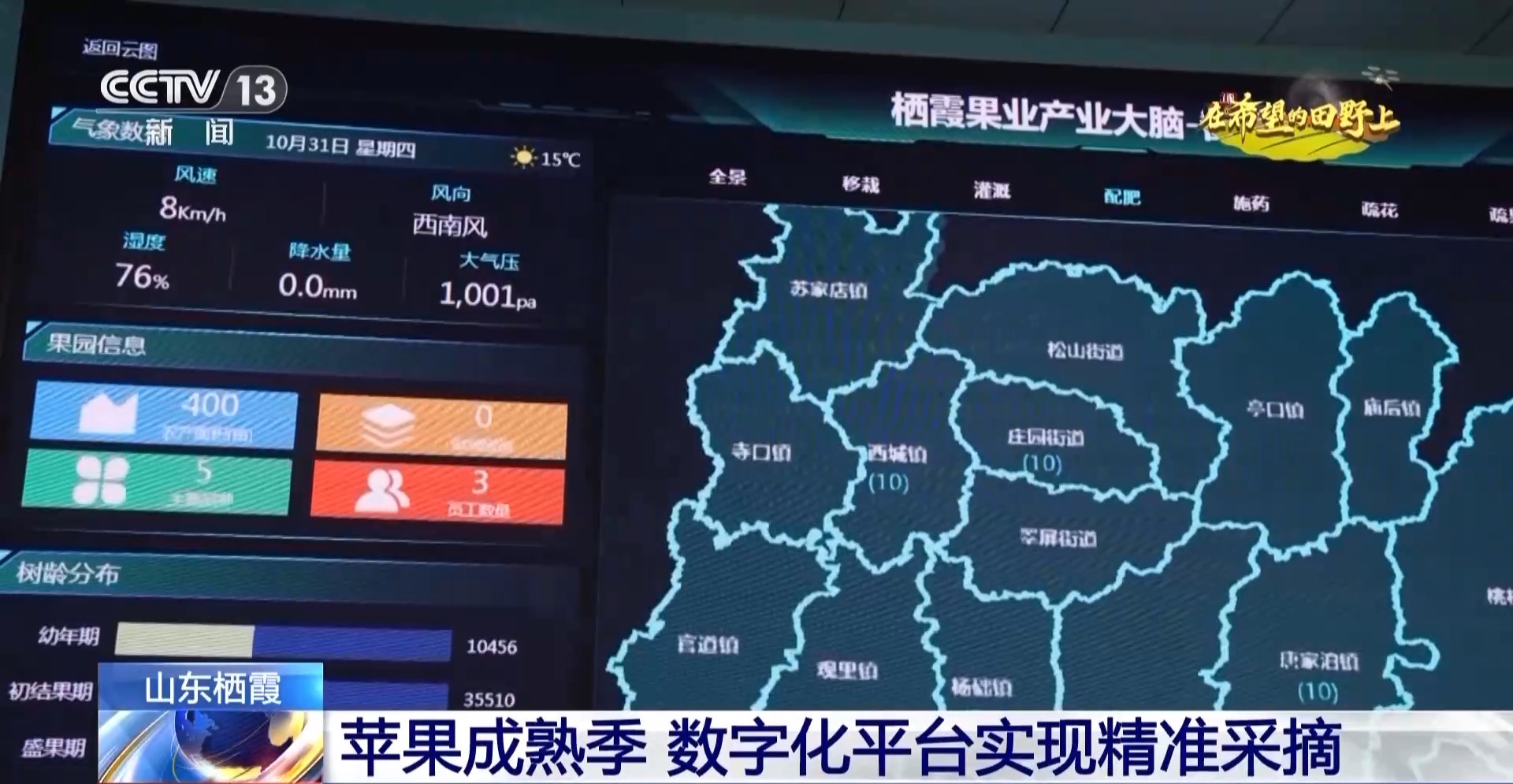棲霞市供銷合作社聯(lián)合社負(fù)責(zé)人 李國(guó)勇:通過(guò)這個(gè)大屏,我們可以清楚地看到果樹(shù)的生長(zhǎng)情況,平臺(tái)也會(huì)將果樹(shù)生長(zhǎng)情況相關(guān)信息通報(bào)給果農(nóng)進(jìn)行精準(zhǔn)采摘。