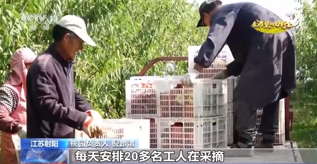 在鹽城市射陽(yáng)縣新坍鎮(zhèn)的一處桃園種植了4萬(wàn)多株桃樹(shù)。果農(nóng)們忙著摘桃、分揀、裝筐,預(yù)計(jì)整個(gè)采摘銷售期能持續(xù)一個(gè)月左右。