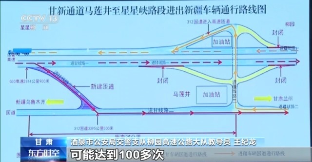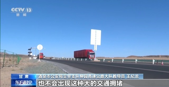 酒泉市公安局交警支隊(duì)柳園高速公路大隊(duì)教導(dǎo)員 王紀(jì)龍:我們每年這個(gè)路段的交通擁堵,可能達(dá)到100多次。