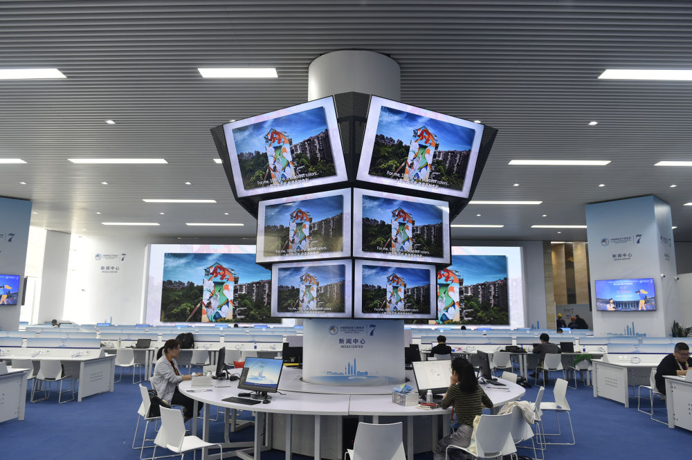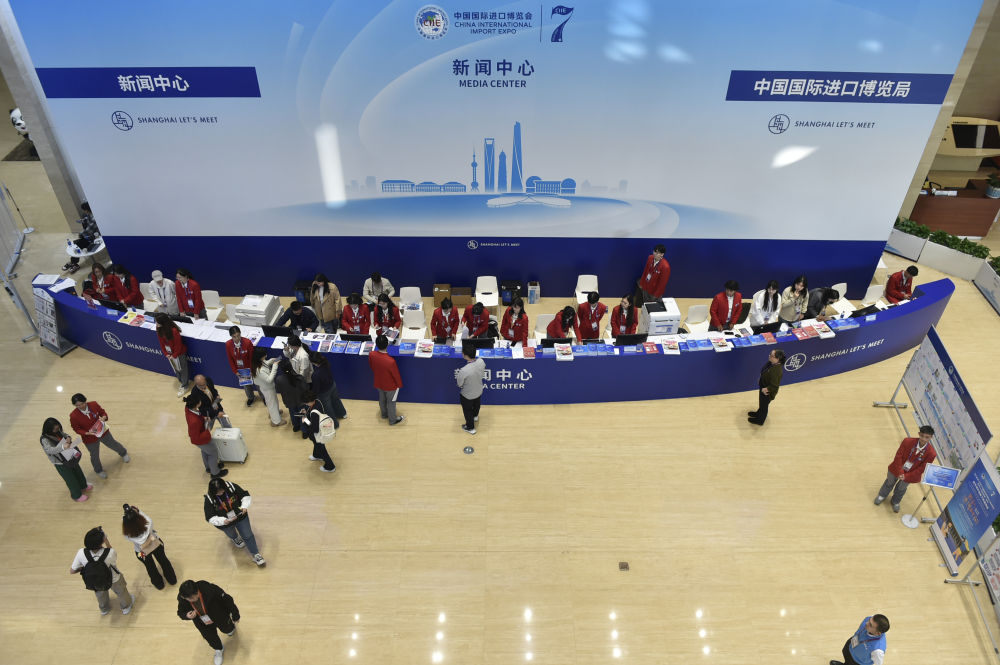 這是11月4日拍攝的第七屆進(jìn)博會(huì)新聞中心。