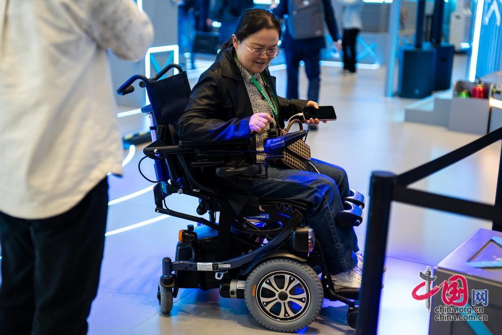 觀眾體驗外骨骼機器人在工作中的實際應用。中國網記者