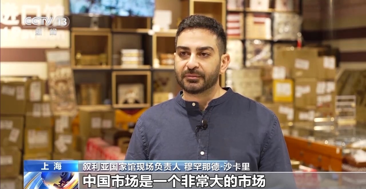 敘利亞國(guó)家館現(xiàn)場(chǎng)負(fù)責(zé)人 穆罕那德·沙卡里:中國(guó)市場(chǎng)是一個(gè)非常大的市場(chǎng),我們團(tuán)隊(duì)決定,必須要有人成為中國(guó)市場(chǎng)和敘利亞市場(chǎng)之間的橋梁,看中國(guó)消費(fèi)者是否喜歡我們的產(chǎn)品,我們需要做什么調(diào)整來(lái)滿(mǎn)足中國(guó)消費(fèi)者的需求。