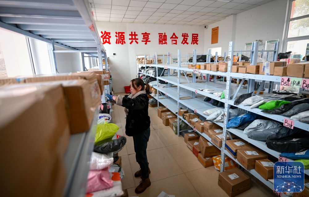 11月10日,隆德縣聯(lián)財鎮(zhèn)客貨郵商旅綜合便民服務站工作人員在整理快遞。