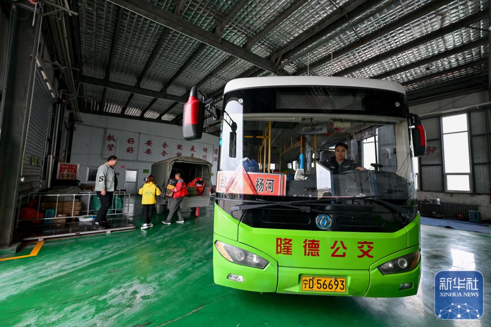 11月9日,一輛載有快遞物品的城鄉(xiāng)公交車從隆德公交公司倉庫駛出。