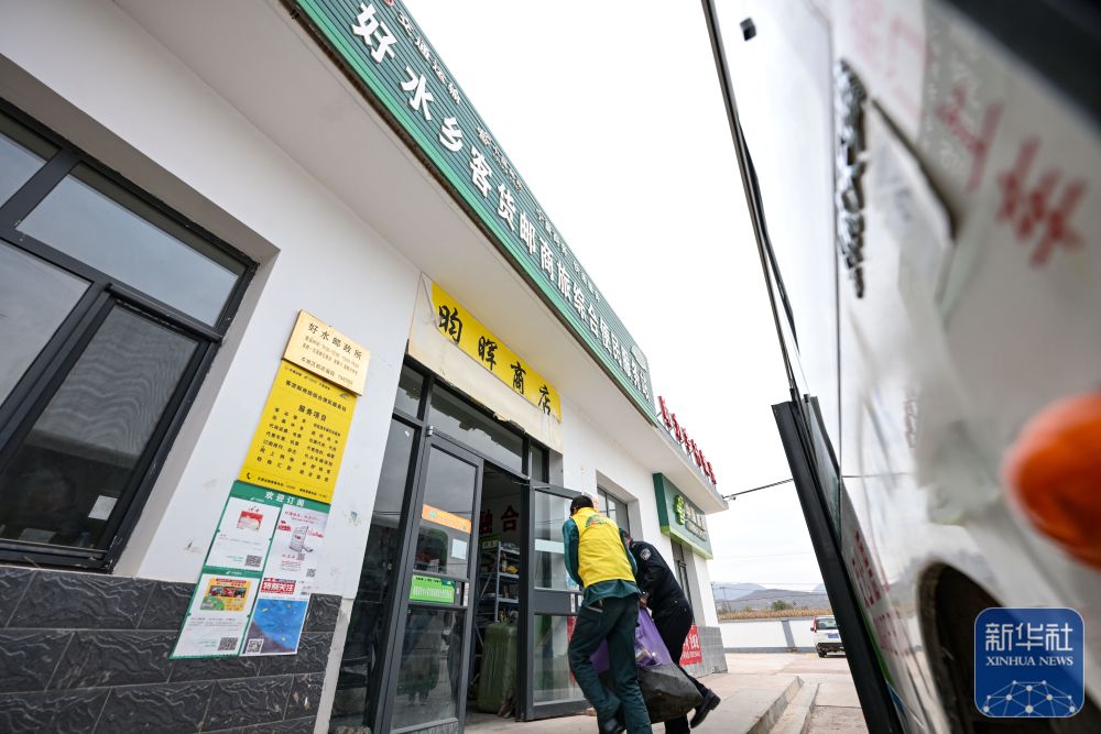 11月9日,隆德縣公交車司機和好水鄉(xiāng)客貨郵商旅綜合便民服務站經營者從公交車上卸下快遞物品。