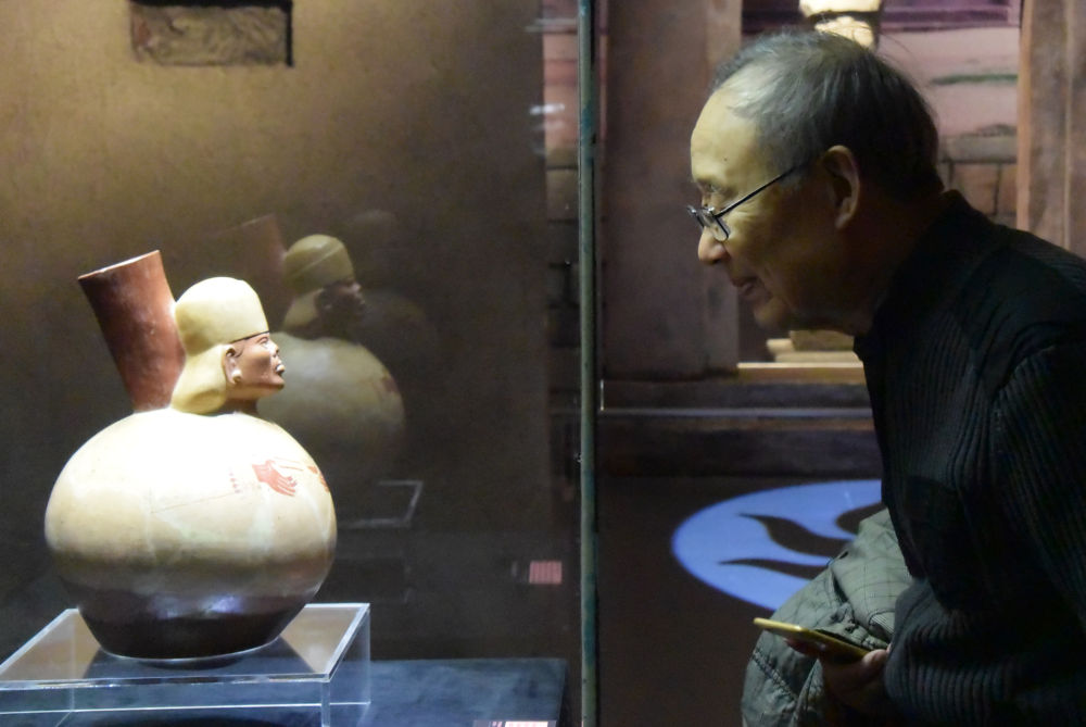 2020年1月17日,“安第斯文明特展——探尋神秘而又令人向往的印加帝國”在天津博物館開展。這是參觀者觀看來自秘魯?shù)恼蛊贰?/p>