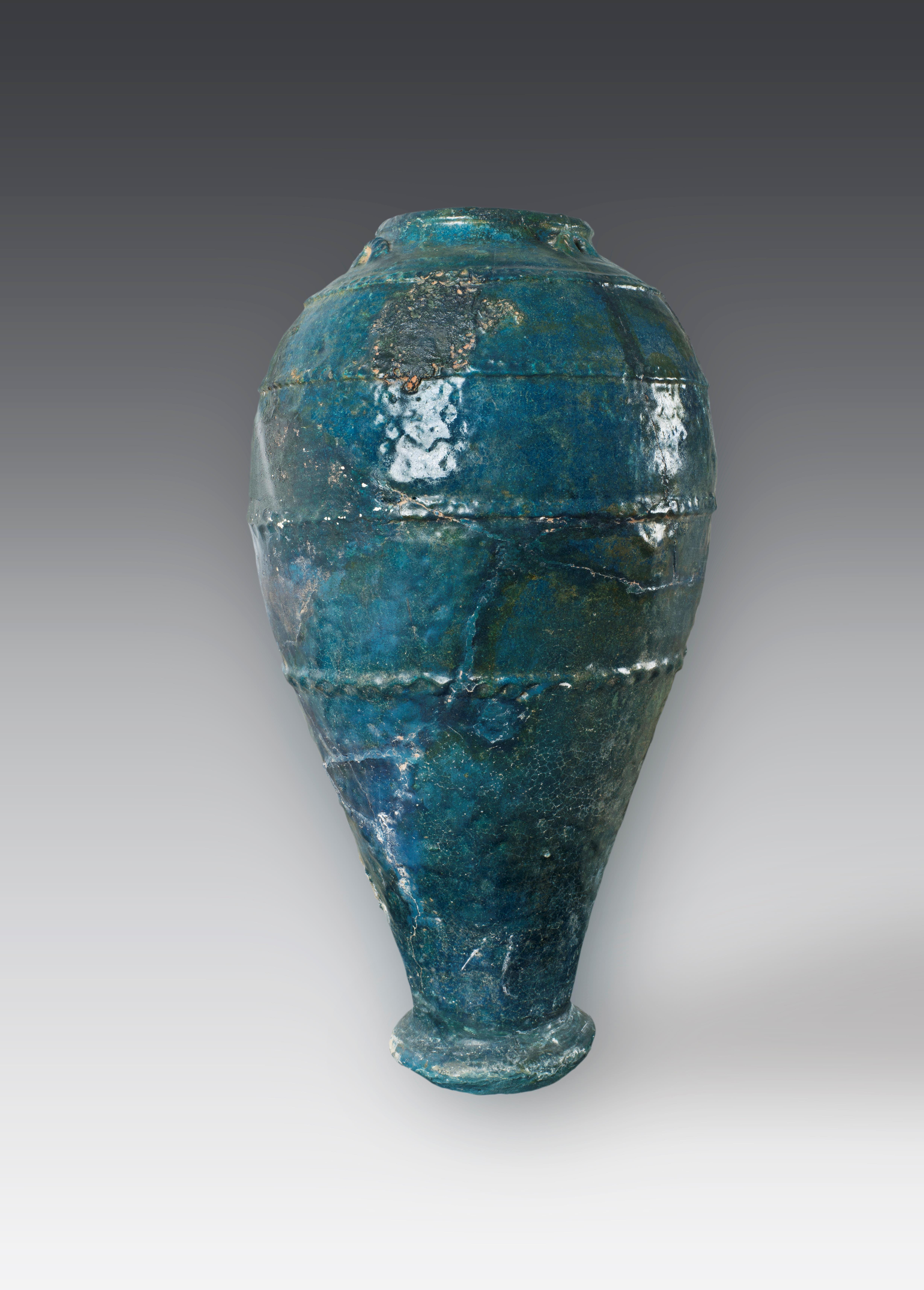 如這件來自古代波斯的孔雀藍(lán)釉陶瓶