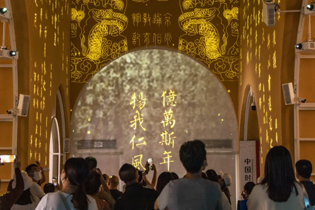 作為北京中軸線15處遺產(chǎn)構(gòu)成要素之一,鐘鼓樓于2019年啟動(dòng)文物修繕及展示提升工作,該工作被納入《北京中軸線申遺保護(hù)三年行動(dòng)計(jì)劃》。記者步入鼓樓一層,各券洞相互連通、明亮開敞。徜徉其中,展覽“時(shí)間的故事”回溯著鐘鼓樓和北京中軸線保護(hù)傳承的故事。忽見遮光簾落下、光影秀開場(chǎng),觀眾皆循響起的音樂(lè)匯聚到展廳中央,或舉起相機(jī),或靜靜欣賞。吊裝在兩旁白色拱形鋼結(jié)構(gòu)下的投影儀投射出萬(wàn)道光線,讓觀眾在光影變幻間走進(jìn)那段“暮鼓晨鐘”的歷史記憶。