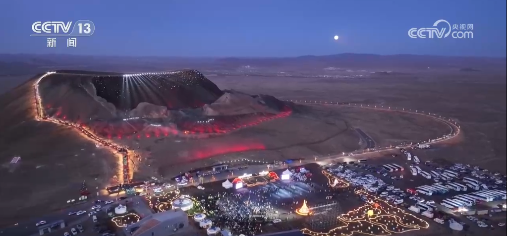 烏蘭察布市的烏蘭哈達火山地質(zhì)公園分布著不同類型、不同規(guī)模的火山30多座,火山群鑲嵌在廣闊的草原之上,被譽為天然的“火山博物館”。為了增強游客的體驗感,這個冬季,當(dāng)?shù)卮蛟炝颂厣鹕綗艄庑恪?/p>