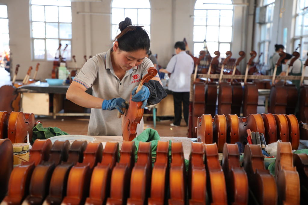 高峰時(shí)節(jié),東高村鎮(zhèn)每年生產(chǎn)的提琴達(dá)30萬支,約占全球銷量的三分之一,銷往全球40多個(gè)國家和地區(qū),年產(chǎn)值超過7000萬元。