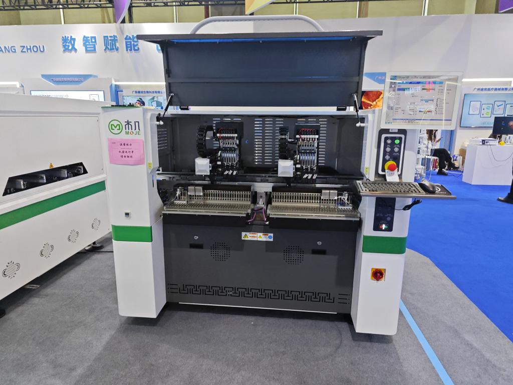 廣東木幾智能裝備有限公司展出的多功能貼片機(jī),引起了來訪者的興趣。公司副總經(jīng)理溫妮介紹,這款多功能貼片機(jī),與同類產(chǎn)品相比提速35%以上,極大提升了電子元器件生產(chǎn)效率。