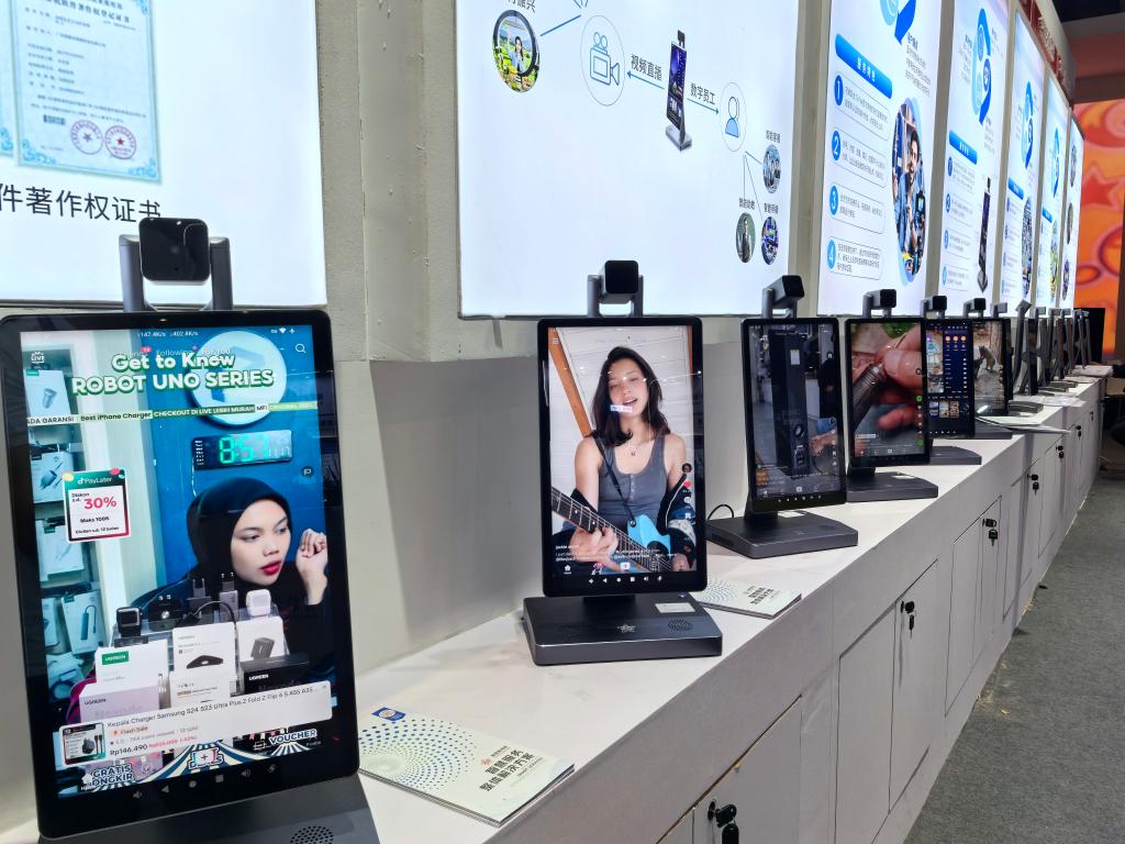 在廣東智慧音視頻科技有限公司的展位前,一排多功能直播智慧機(jī)引起了觀眾的濃厚興趣。該公司跨境電商負(fù)責(zé)人告訴記者,越來越多的中小企業(yè)嘗試“直播+電商”的出海模式,這款產(chǎn)品內(nèi)嵌了短視頻直播的云導(dǎo)播臺,同時借助外貿(mào)專線,方便企業(yè)高效切入海外興趣電商的“賽道”。