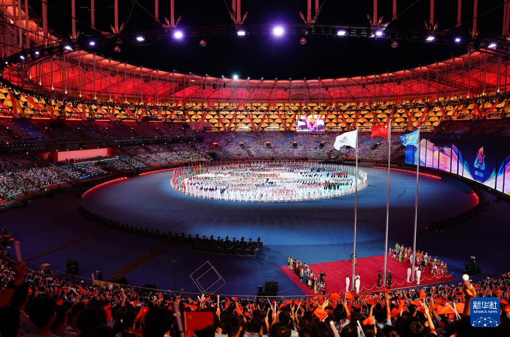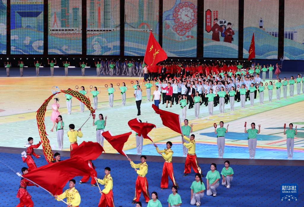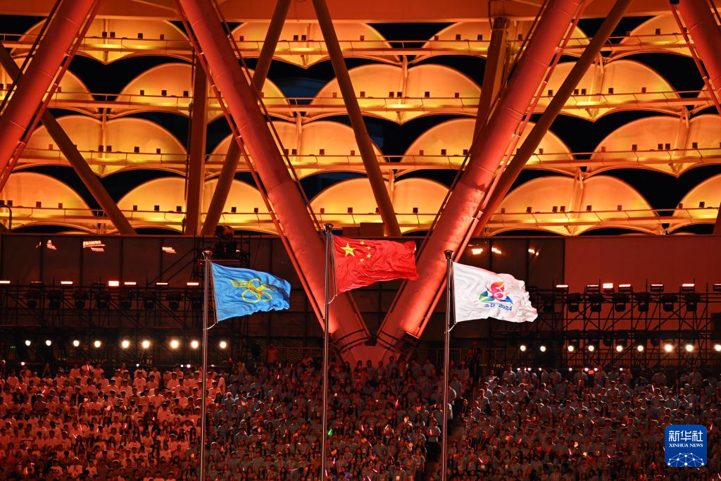 11月22日,開(kāi)幕式現(xiàn)場(chǎng)升起中華人民共和國(guó)國(guó)旗、中華人民共和國(guó)少數(shù)民族傳統(tǒng)體育運(yùn)動(dòng)會(huì)會(huì)旗和中華人民共和國(guó)第十二屆少數(shù)民族傳統(tǒng)體育運(yùn)動(dòng)會(huì)會(huì)旗。