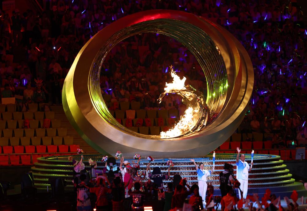 22日晚,第十二屆全國(guó)少數(shù)民族傳統(tǒng)體育運(yùn)動(dòng)會(huì)開(kāi)幕式在海南省三亞市體育中心體育場(chǎng)舉行。約兩個(gè)小時(shí)時(shí)間里,各民族特色風(fēng)情、中華優(yōu)秀傳統(tǒng)文化、祖國(guó)壯美風(fēng)光、現(xiàn)代發(fā)展成就等元素精彩紛呈,在舞美設(shè)計(jì)和高科技的賦能下,為觀眾帶來(lái)一場(chǎng)海島椰風(fēng)中的沉浸式“大團(tuán)圓”盛宴。