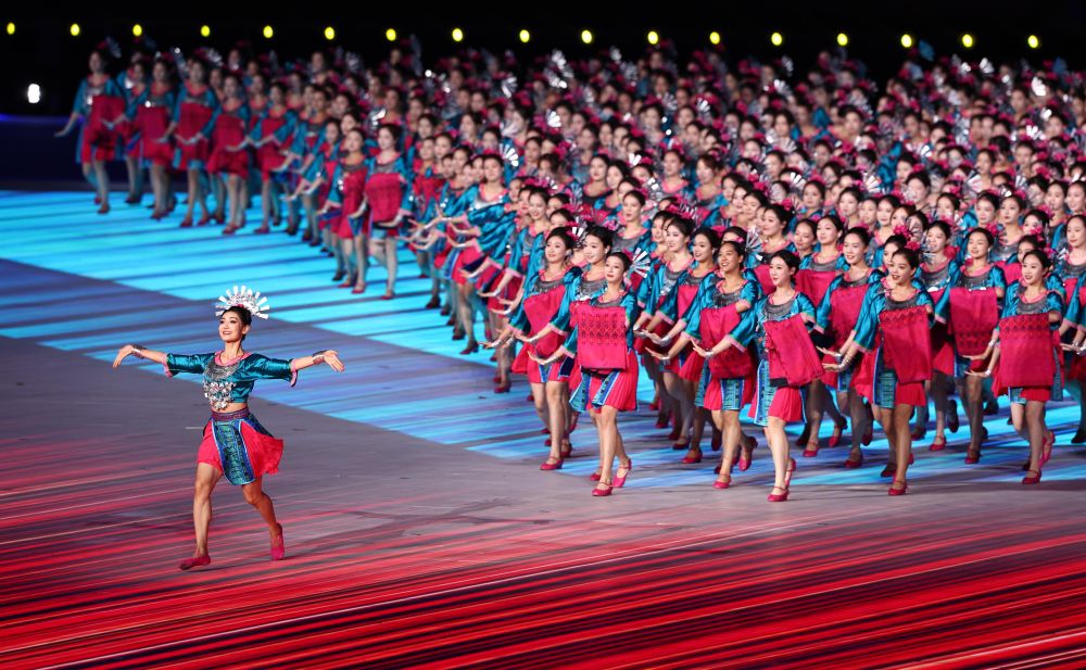 各個(gè)代表團(tuán)入場(chǎng)時(shí),都伴隨30秒的駐停表演,在展示民族文化與地方特色的同時(shí),也為觀眾帶來(lái)一場(chǎng)視聽(tīng)盛宴。