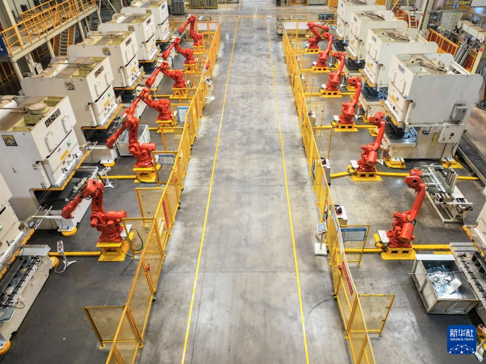 9月27日,機械臂在位于寧鄉(xiāng)市金洲新城的格力暖通制冷設備有限公司生產(chǎn)線上作業(yè)(無人機照片)。新華社記者 陳澤國 攝