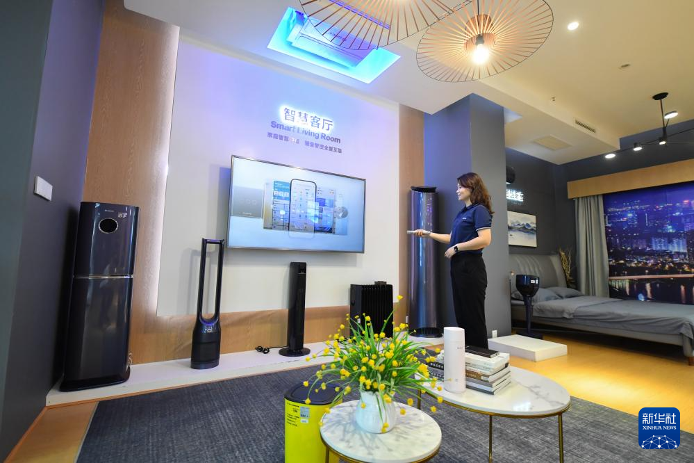 9月27日,工作人員在位于寧鄉(xiāng)市金洲新城的格力暖通制冷設備有限公司展示智能家電使用場景。新華社記者 陳澤國 攝