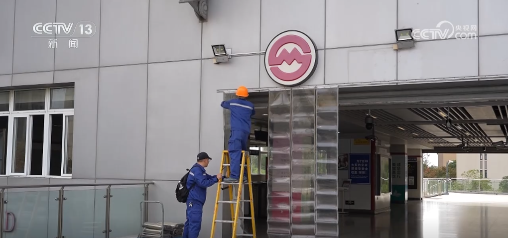 在上海軌道交通11號線白銀路站1號口,物業(yè)師傅們正在安裝擋風門簾。檢修人員也第一時間排查空調(diào)等設備,并做好防凍應對措施。