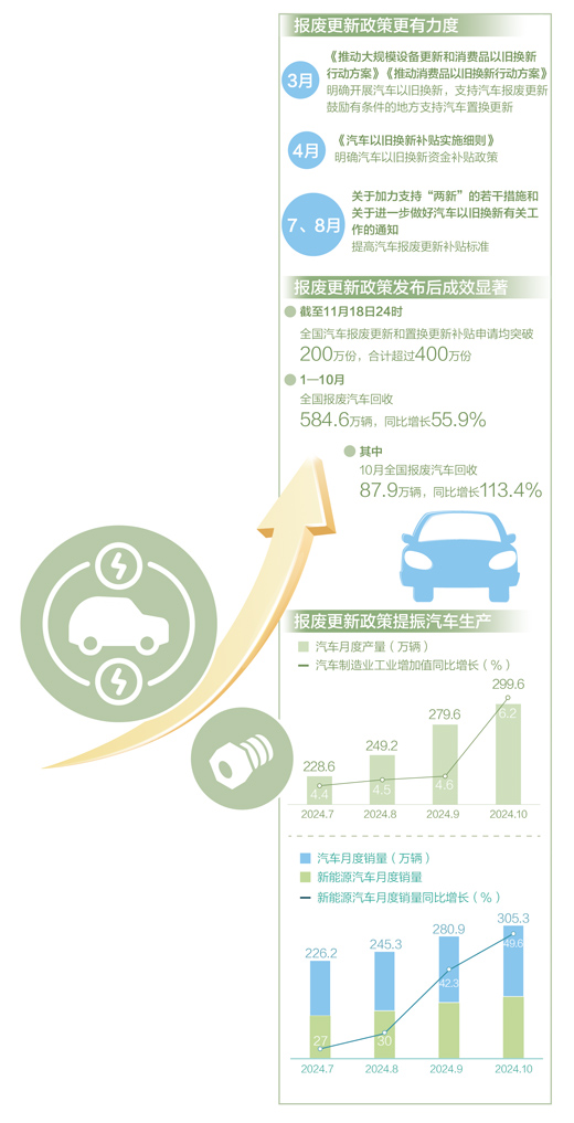 政策激發(fā)了消費(fèi)者以舊換新熱情,也讓中再生這樣的報(bào)廢汽車(chē)回收拆解企業(yè)生產(chǎn)線更加忙碌。中再生報(bào)廢汽車(chē)事業(yè)部副經(jīng)理王功獻(xiàn)介紹,截至11月上旬,中再生共收購(gòu)報(bào)廢機(jī)動(dòng)車(chē)1萬(wàn)余輛,與去年同期相比增長(zhǎng)近七成。
