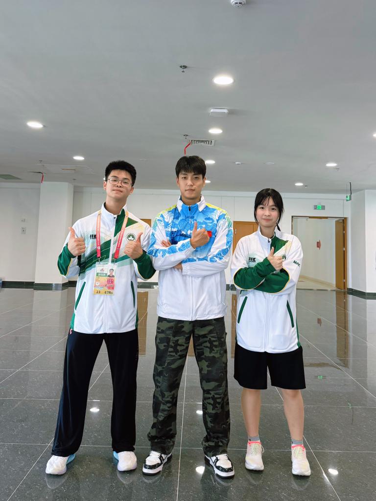 葉文喆自小愛看武俠片,在選修課上接觸民族武術后就潛心鉆研,經常在網上看國內大型賽事直播,還是四川隊隊員付楨麗的“迷弟”。一場比賽后,他向付楨麗要簽名,并贈送了對方澳門特色徽章。