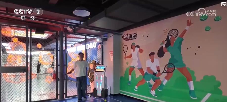 在四川成都的一家室內(nèi)綜合運動館,除了有保齡球、射擊等傳統(tǒng)項目,還有一些科技感十足的新體驗。在眼前這塊僅20多平方米的場地,通過發(fā)球機和紅外感應技術,可以模擬真實的網(wǎng)球擊球路線,給消費者帶來了全新的體驗。
