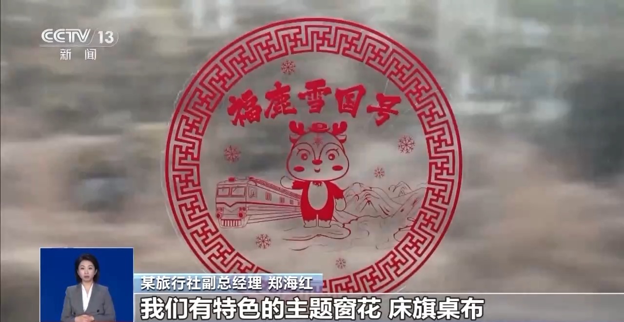 某旅行社副總經(jīng)理 鄭海紅:在列車(chē)內(nèi)部做了一個(gè)整體裝飾,我們有特色的主題窗花,床旗桌布,讓南方的“小金豆”來(lái)到黑龍江,不但能夠賞冰看雪,還能體驗(yàn)到我們黑龍江獨(dú)有的鄂倫春的非遺,感受冰雪給大家?guī)?lái)的震撼。