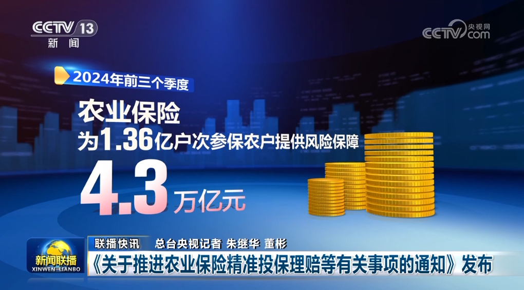 金融監(jiān)管總局等四部門(mén)近日聯(lián)合發(fā)布通知,對(duì)農(nóng)業(yè)保險(xiǎn)投保理賠、應(yīng)收保費(fèi)、條款費(fèi)率、數(shù)據(jù)共享等提出要求,進(jìn)一步提高投保理賠精準(zhǔn)性,推動(dòng)我國(guó)農(nóng)業(yè)保險(xiǎn)高質(zhì)量發(fā)展。今年前三個(gè)季度,農(nóng)業(yè)保險(xiǎn)為1.36億戶次參保農(nóng)戶提供風(fēng)險(xiǎn)保障4.3萬(wàn)億元。