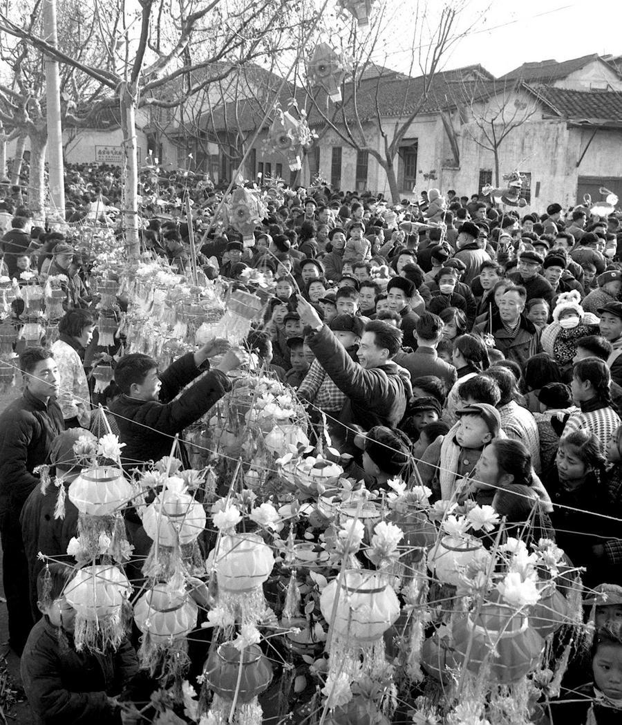 1966年春節(jié),江蘇南京市民在夫子廟選購花燈。 新華社記者 汪文華 攝