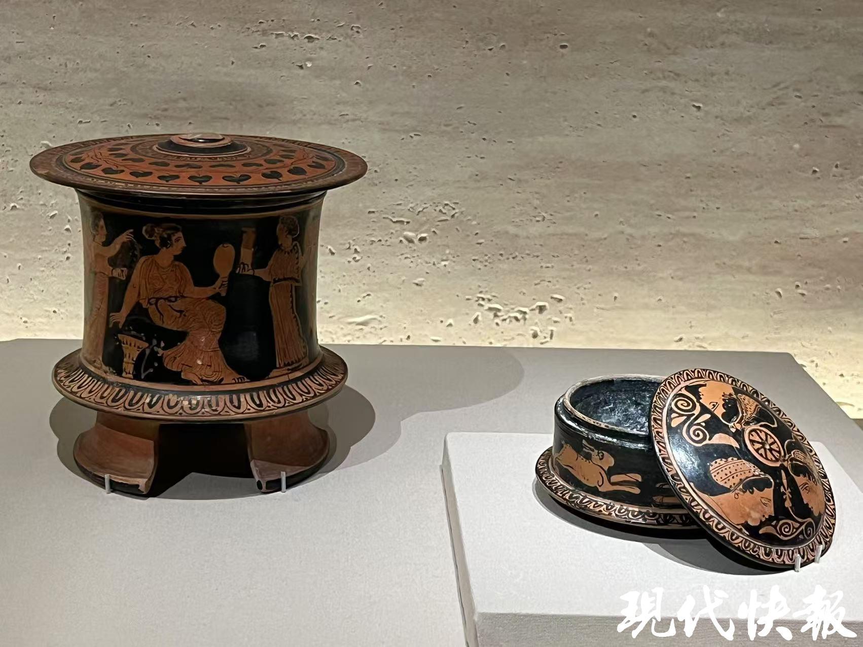 黑底紅畫的化妝盒、金鏈網(wǎng)頭飾、青銅勇士小雕像……在“美的多元——古希臘的藝術與生活”展覽中,觀眾仿佛穿越時空,置身于古希臘的世界。玫瑰、莎草等香料散發(fā)著獨特的氣息,引領人們探尋古希臘人的生活風貌。在這里,東西方審美差異與共通的對美追求相互交融,讓觀眾對美的理解更加深刻和多元。