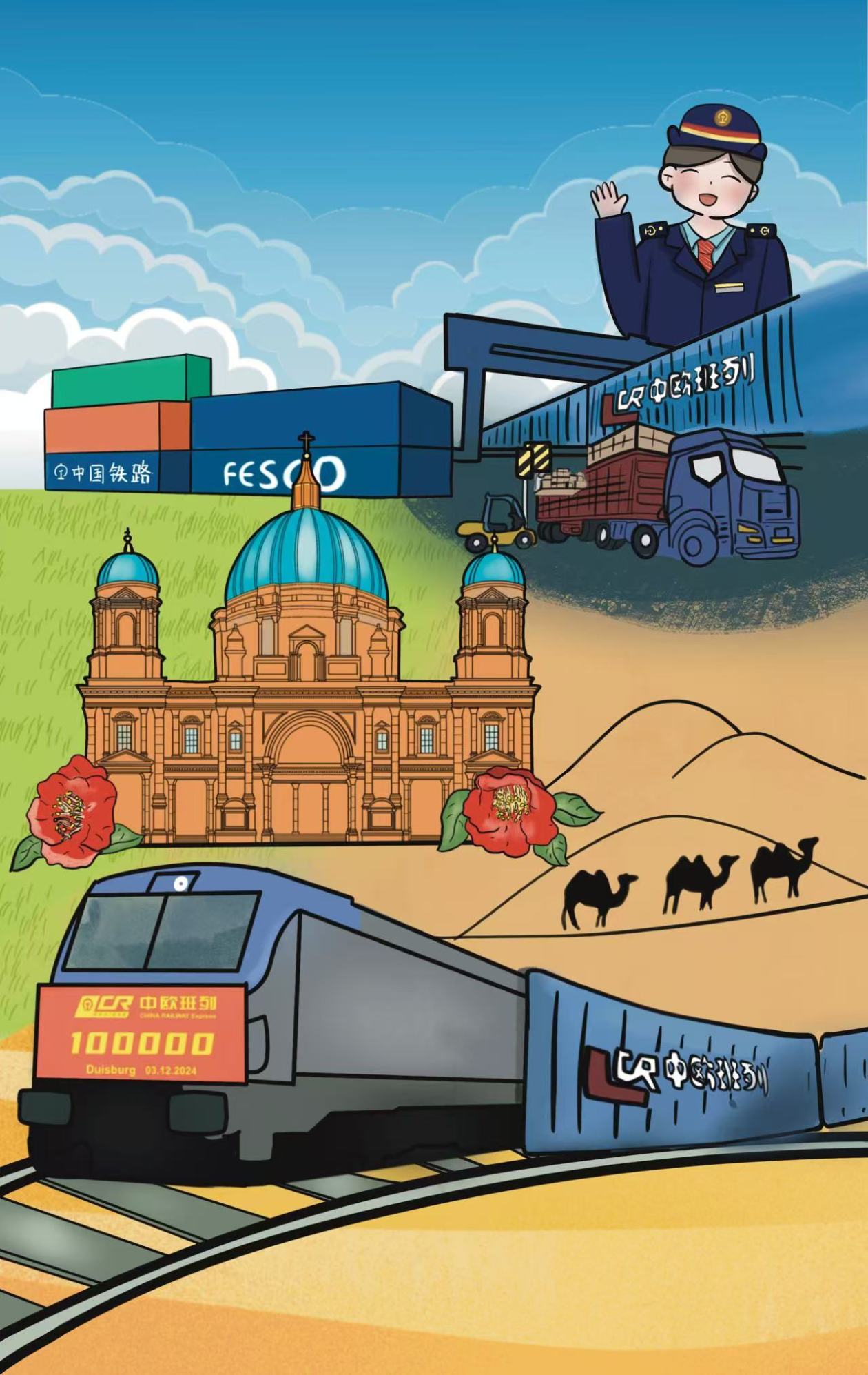 當(dāng)?shù)貢r間12月3日9時10分,從中國重慶團(tuán)結(jié)村中心站開出的第10萬列中歐班列X8083次順利抵達(dá)德國杜伊斯堡。截至目前,中歐班列已通達(dá)歐洲25個國家227個城市,連接11個亞洲國家超過100個城市,服務(wù)網(wǎng)絡(luò)基本覆蓋亞歐大陸全境。萬里鐵道蜿蜒伸展,“鋼鐵駝隊”通達(dá)八方,讓古老的絲綢之路煥發(fā)新的生機(jī)與活力。