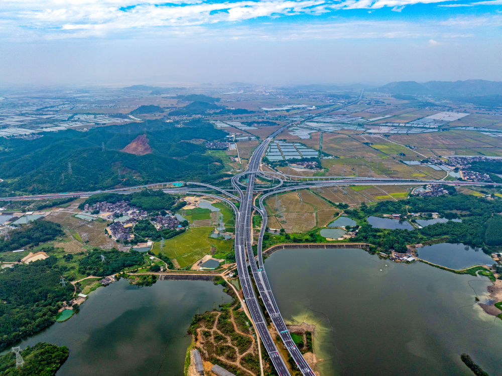中鐵十四局承建的黃茅??绾Mǖ乐泻突ネǎ?1月23日攝,無(wú)人機(jī)照片)。新華社發(fā)(馮珠仔 攝)