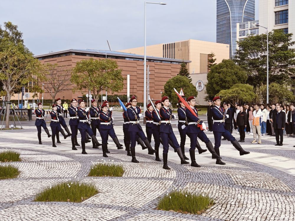 如今,澳門所有學校已實現(xiàn)升掛國旗全覆蓋。澳門大學于2018年正式成立學生國旗儀仗隊。這支由本科生、碩士生、博士生自發(fā)組成的隊伍6年多來持續(xù)成長壯大,已成為澳門高校界的一張靚麗名片。